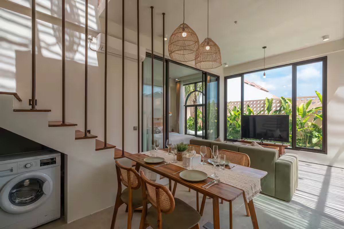 Modern Tropical Sanctuary: 2-Bedroom Villa in Pererenan Price: IDR 4,300,000,000 / USD 262,000 Freehold Price: IDR 6.175.000.000 / USD 375.000 Ownership: Leasehold 27 Years with Extension Options Discover a harmonious blend of rustic elegance and modern comfort in this stunning 2-bedroom villa, located in the tranquil residential area of Canggu. With its stone-clad exterior and lush tropical garden, this villa offers timeless charm and serenity. A spacious second-floor terrace invites you to unwind and take in the peaceful surroundings, making it the perfect retreat. Key Features: - Land Size: 203 sqm - Building Size: 163 sqm - Bedrooms: 2 - Bathrooms: 2 - Year Built: 2023 - Fully Furnished - Leasehold: 27 Years Location Highlights: Conveniently situated just 10 minutes from Pererenan Beach and 15 minutes from Berawa, this villa offers easy access to Bali’s vibrant lifestyle, including beaches, cafes, and boutiques. Perfect for Investment: Whether you're looking for a private residence or an investment property, this villa delivers natural beauty, modern luxury, and excellent rental potential. Contact us today for more details or to arrange a private viewing of this tropical sanctuary in Canggu!